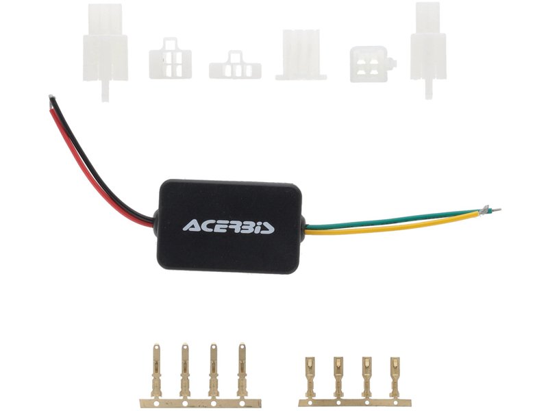 ACERBIS GLEICHRICHTER FÜR VSL LAMPENMASKE Eigenschaften: - für den Einsatz von ACERBIS VSL Lampenmasken an Motorrädern mit Vergasern bzw. ohne interne Batterieversorgung - Ausgangsspannung: Gleichspannung 12V+/-0,2V - Ausgangsleistung: 180W - Ausgangstromstärke: 15A - Betriebstemperatur: -40-+80° - Wandlungseffizienz: 92-96% - Statischer stromverbrauch: 10-15mA - Größe: 55x35x20mm - Gewicht: 32g Art.-Nr.: AC 26569.090 Farben: schwarz